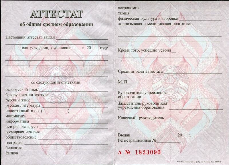 Цены на аттестаты Беларуси