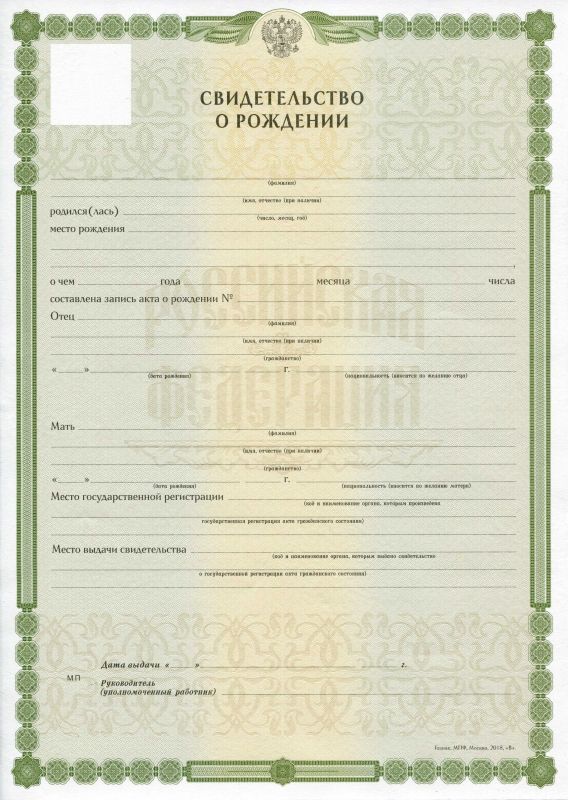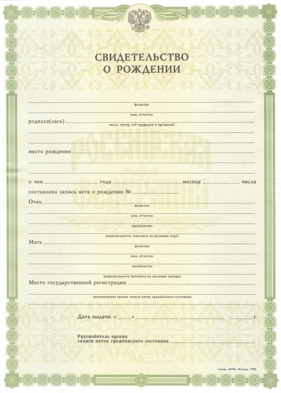 Знайте обратившись к нам, Вы останетесь довольны результатом! Мы предлагаем качественное свидетельство о рождении на оригинальном бланке ГОЗНАКа с реальными печатями и всеми уровнями защиты.