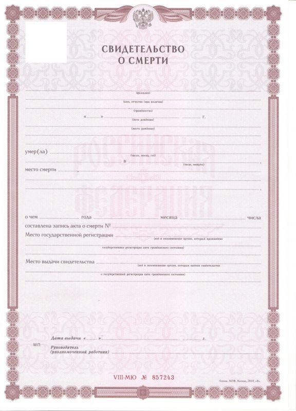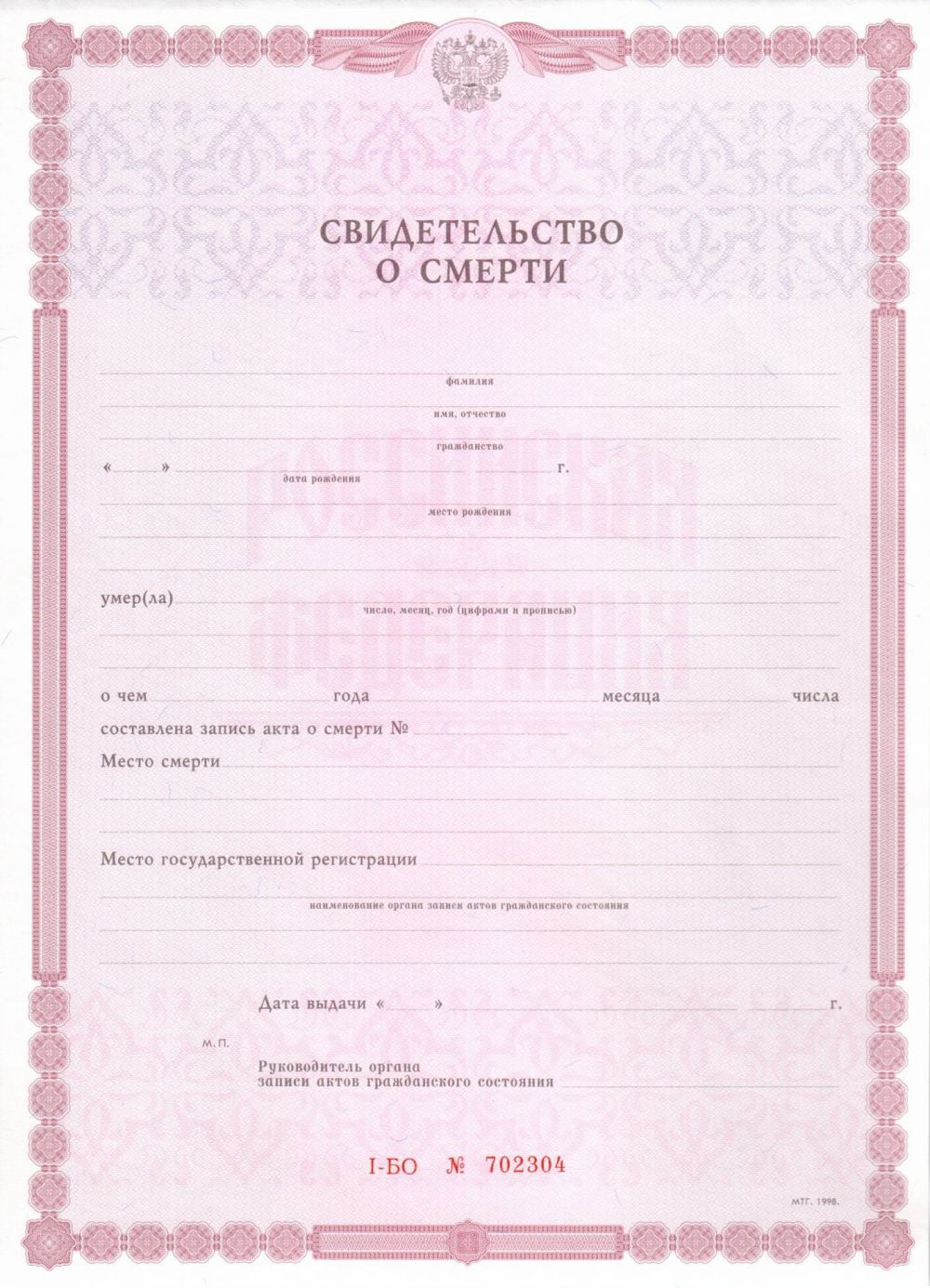 Знайте обратившись к нам, Вы останетесь довольны результатом! Мы предлагаем качественное свидетельство о смерти на оригинальном бланке ГОЗНАКа с реальными печатями и всеми уровнями защиты.