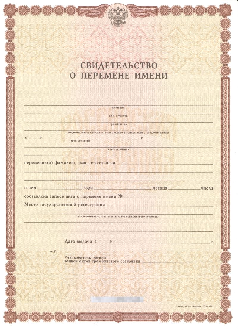 - Документ: Свидетельство о перемене имени 2018 - н.в.